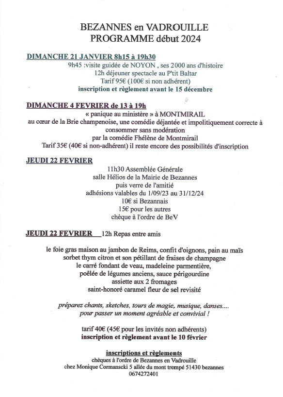 Association de loi 1901, le comité des fêtes de Bezannes s’est donné pour objectif de rassembler les habitants autour d’animations festives de plein air ou en salle, créant des moments forts et incontournables dans la vie de notre commune, pour se rencontrer, échanger et faire la «fête».